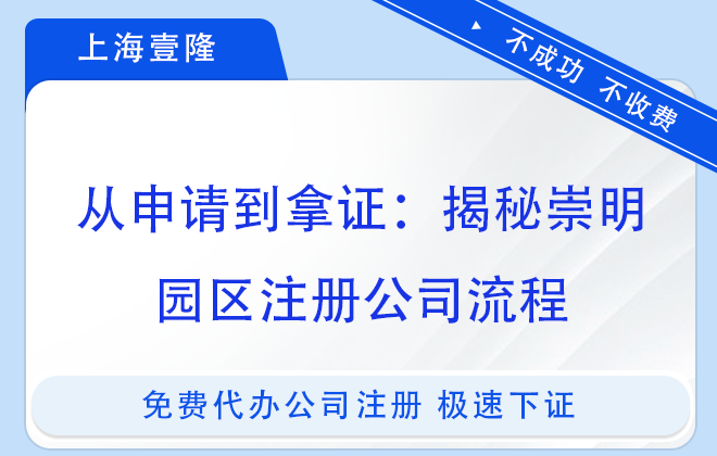 完成以上步驟后,公司在崇明園區(qū)的注冊流程基本完成,可以正式開展經(jīng)營活動。注冊的具體時間可能會因各種因素而有所不同。若您需要代辦注冊公司,可以找上海壹隆代辦,上海壹隆15年服務(wù)經(jīng)驗,服務(wù)客戶10萬+,可提供園區(qū)地址,歡迎咨詢!